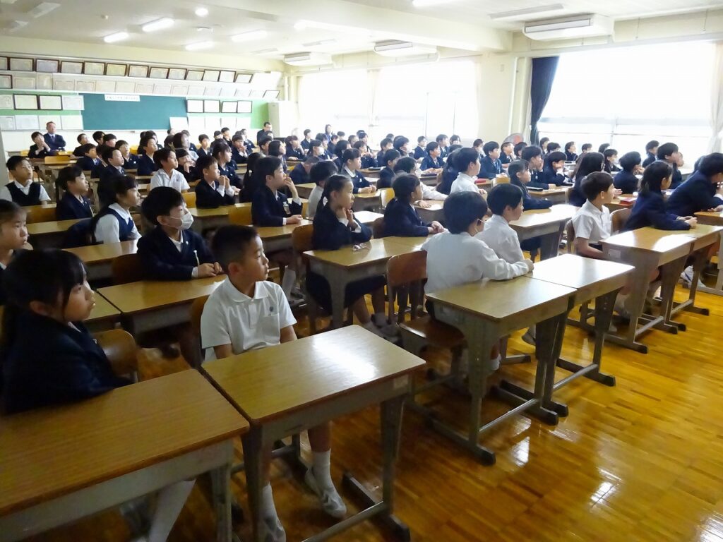本日、3・4年生を対象に非行防止教室が行われました。中央警察署の生活安全課から2名の方をお迎えし、お話をしていただきました。