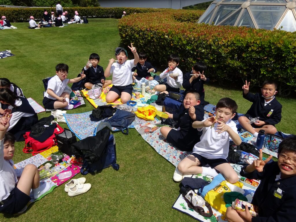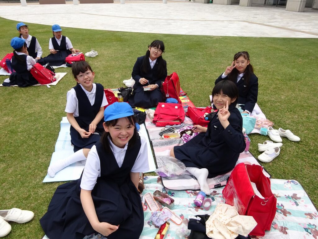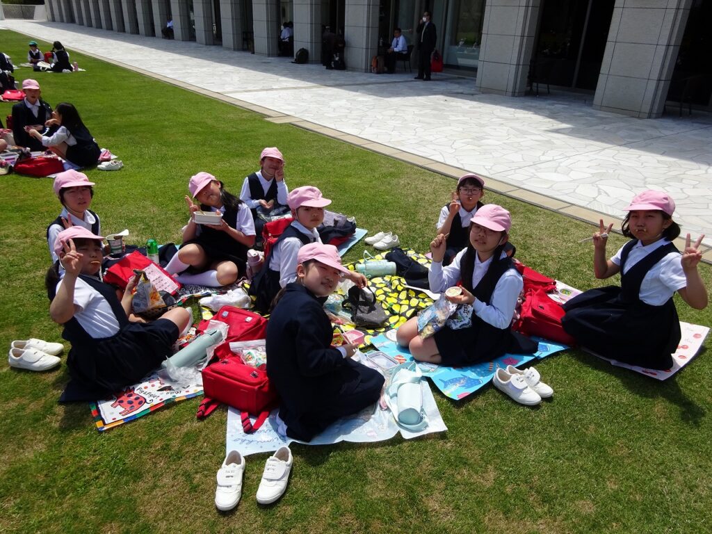 鑑賞の後は、お待ちかねのお昼ごはんの時間です。友達と集まってお弁当やおやつをおいしそうに食べていました。
